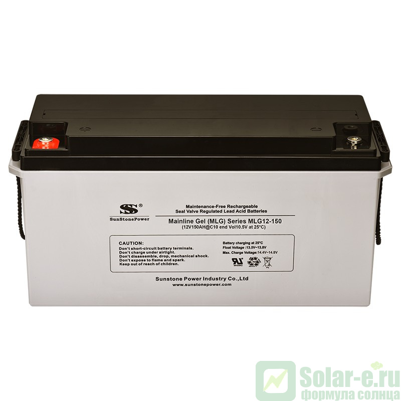 Гелевый тяговый аккумулятор SunStonePower MLG 150Ач 12В серии MLG это тяговый аккумулятор глубокого разряда ( deep cycle ) используемый в качестве источника питания в системах как автономного так и резервного электроснабжения, а так же лодочных моторов и любых других электродвигателей с напряжением 12 Вольт. Данный аккумулятор зарекомендовал себя как надежный аккумулятор для систем резервного электроснабжения и для работы в системах электропитания на солнечных батареях. Компания Технолайн ( e-solarpower.ru ) использует данные аккумуляторы с 2012 года, их безотказная работа стала основной причиной по которой мы рекомендуем именно эти аккумуляторы.В гелевых аккумуляторах в качестве сепаратора между свинцовыми пластинами применяется силикагель, которым заливается пространство между пластинами в процессе производства. Силикагель после застывания представляет собой твердое вещество с огромным количеством пор, в которых удерживается электролит. Благодаря тому, что силикагель полностью занимает пространство между пластинами, в гелевых аккумуляторных батареях практически невозможно осыпание свинцовых пластин и как следствие, закорачивание и выход из строя.