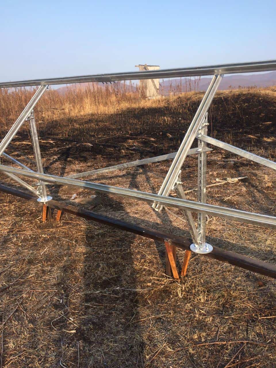 Данный комплект предназначен установки солнечных батарей на земле в один ряд под углом 45 градусов к горизонту (с двумя рядами опорных ног ).
