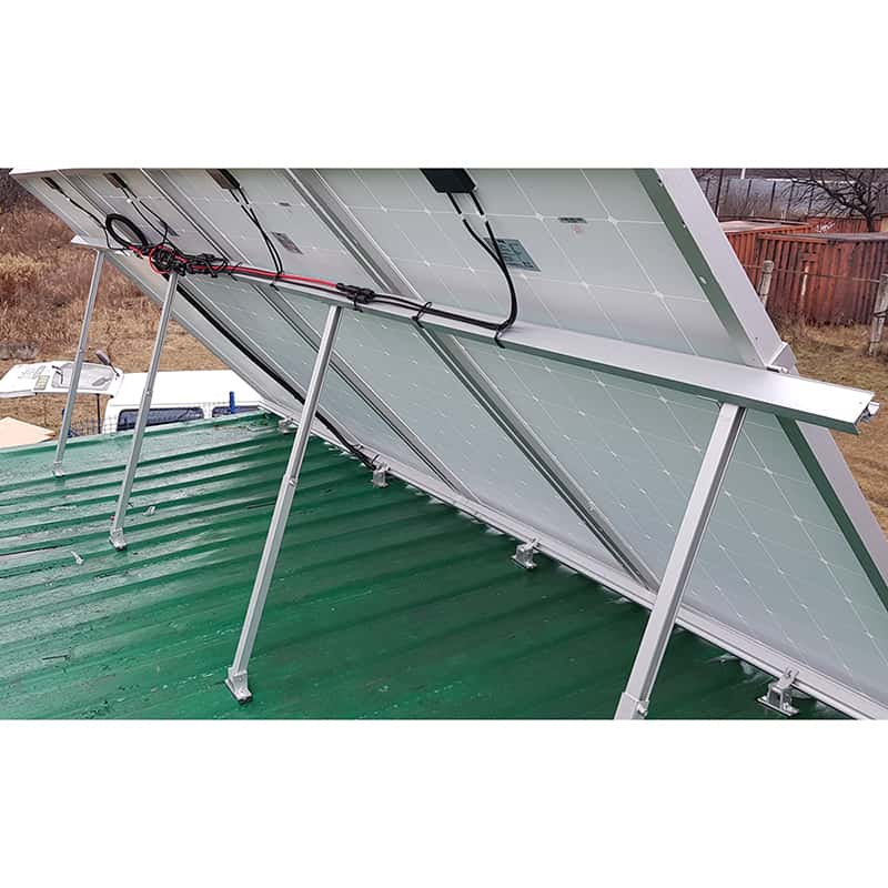 Данный комплект предназначен для монтажа солнечных батарей на плоской или наклонной поверхности (земле, крыше из мягкой черепицы либо металлочерепицы) в один ряд. Регулируемый угол наклона ( от 30 до 60 градусов ), позволяет эффективней использовать батареи, за счет изменения площади воздействия прямых солнечных лучей.