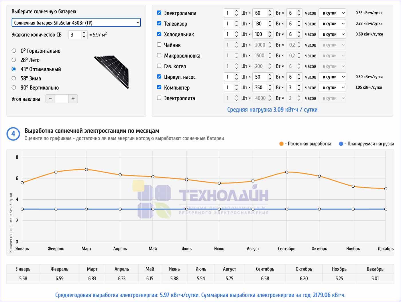 Примечание: Все расчеты являются примерными, для правильного и сбалансированного подбора систем автономного электроснабжения под Ваши нужды, необходимо обратиться к менеджерам нашей компании или заполнить и отправить заявку на расчет солнечной электростанции.